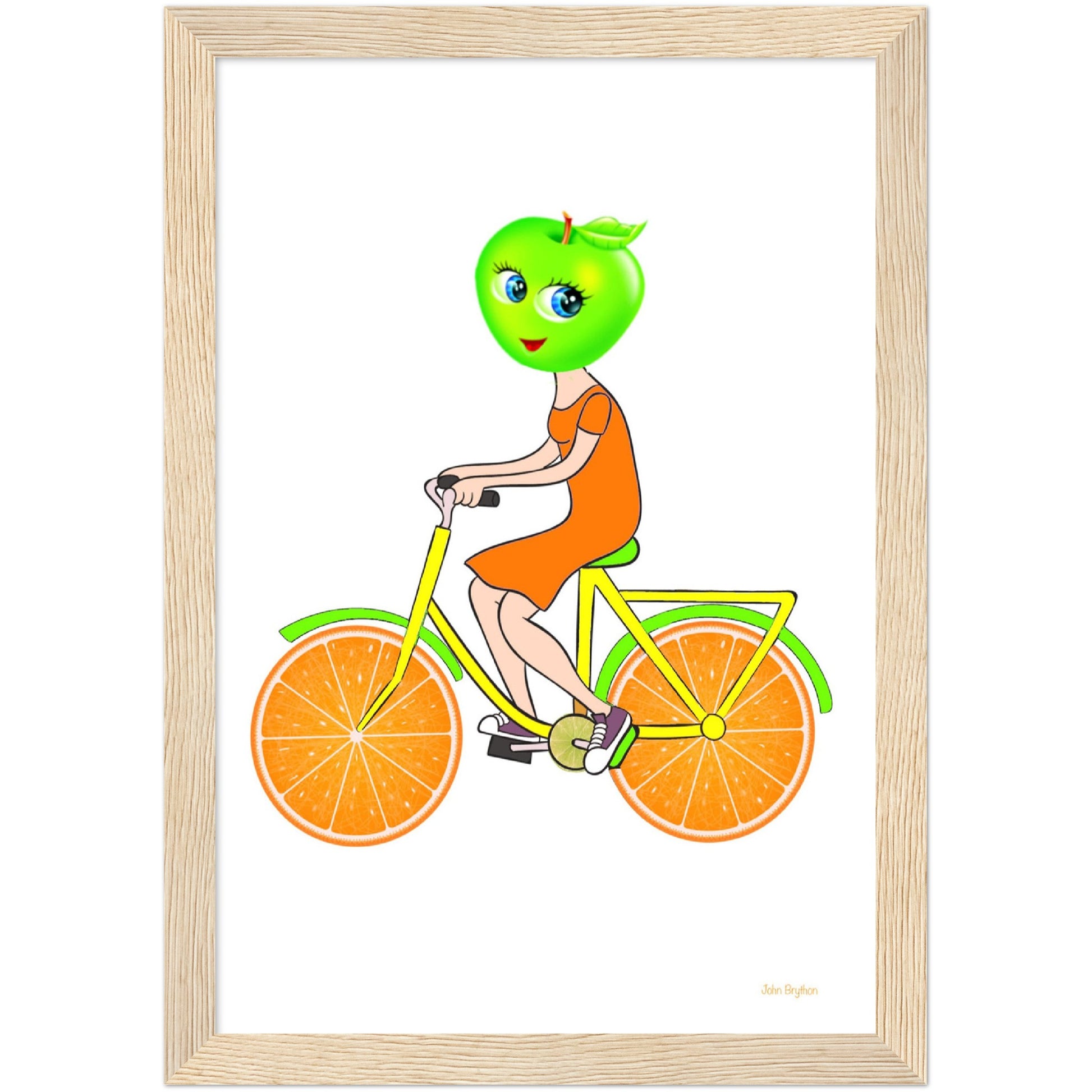 Framed print of an apple car on a fruit bike.
