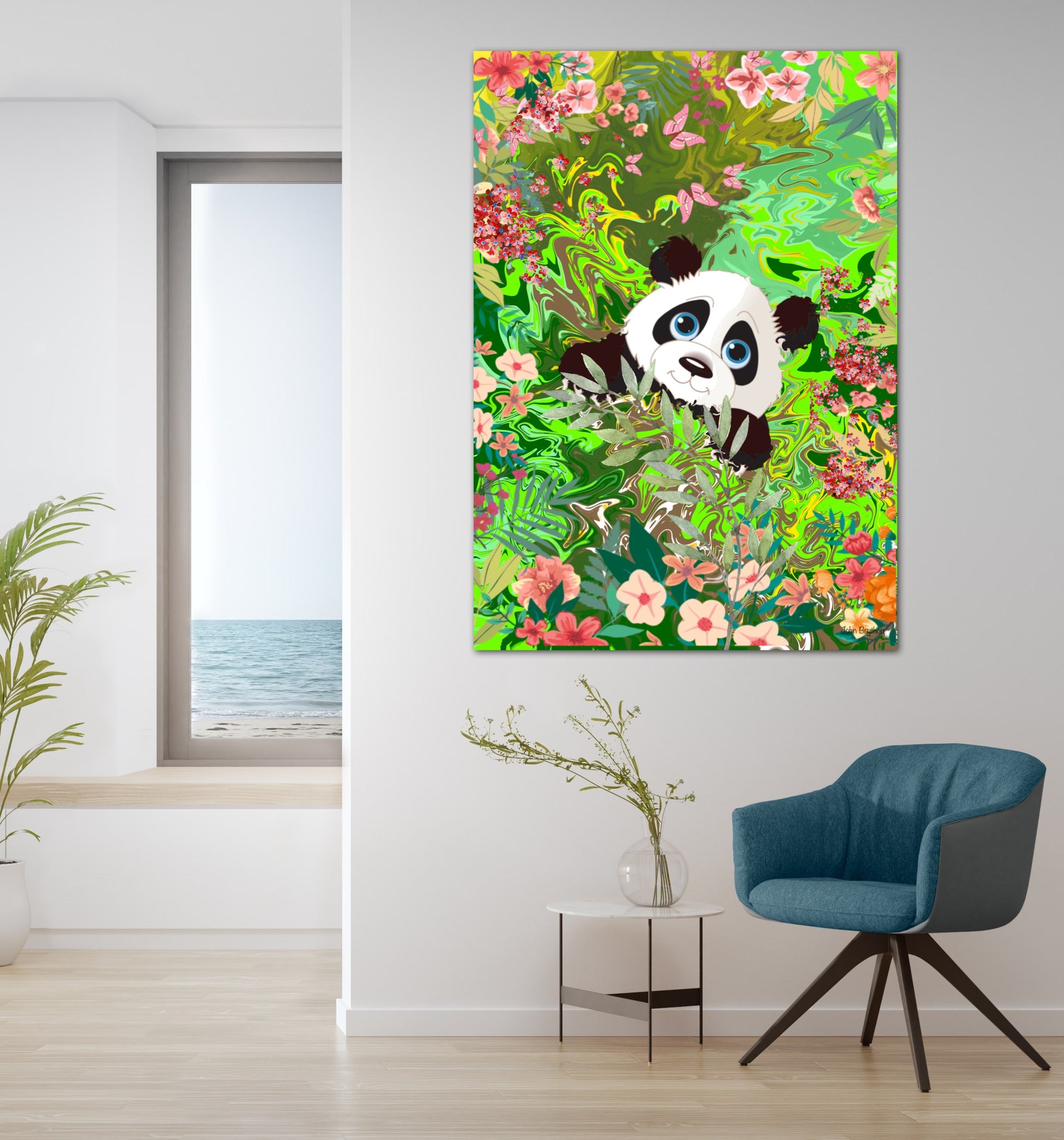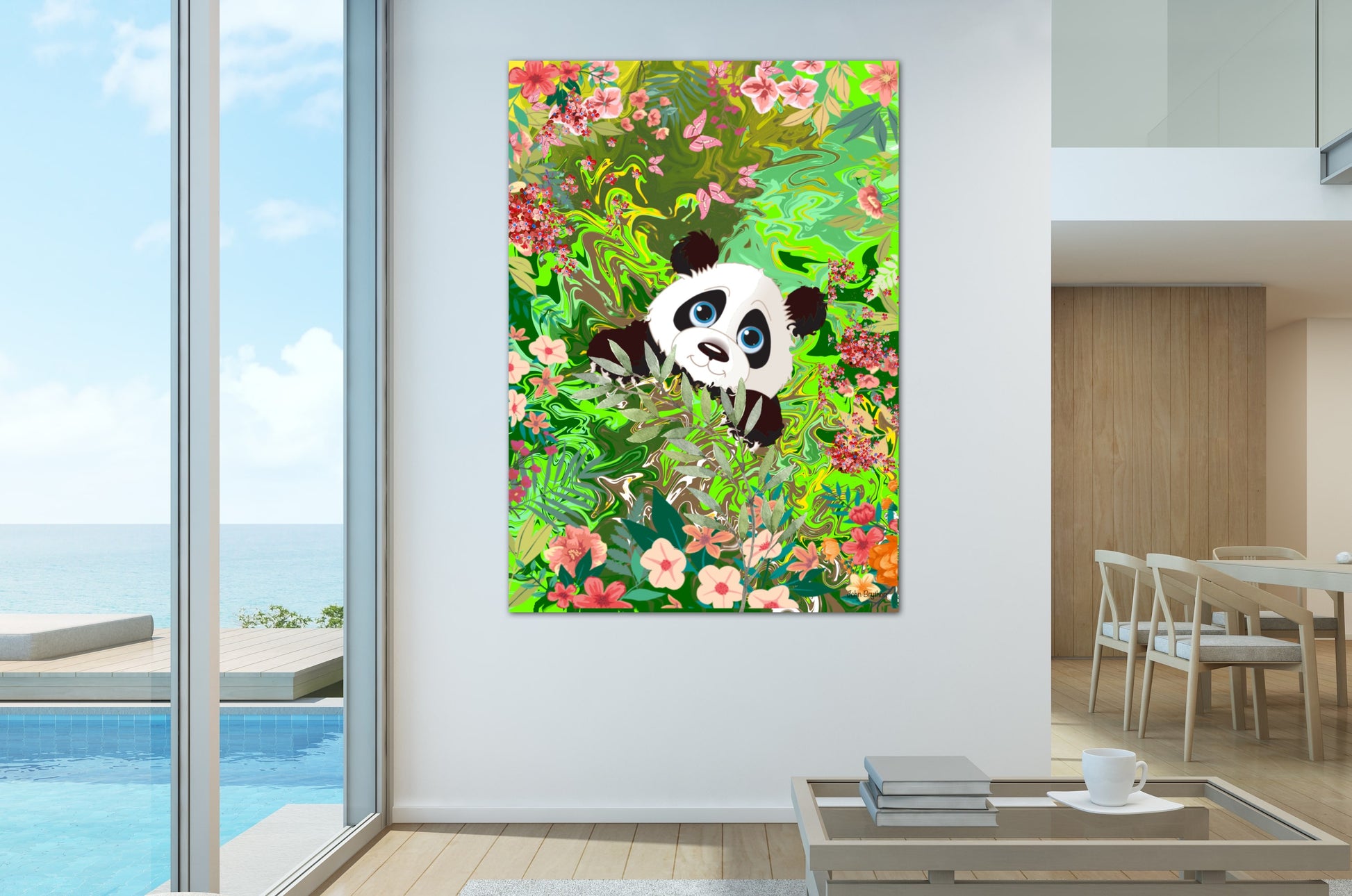 Abstract painting of a Panda Bear, printed of to a high quality stretched canvas