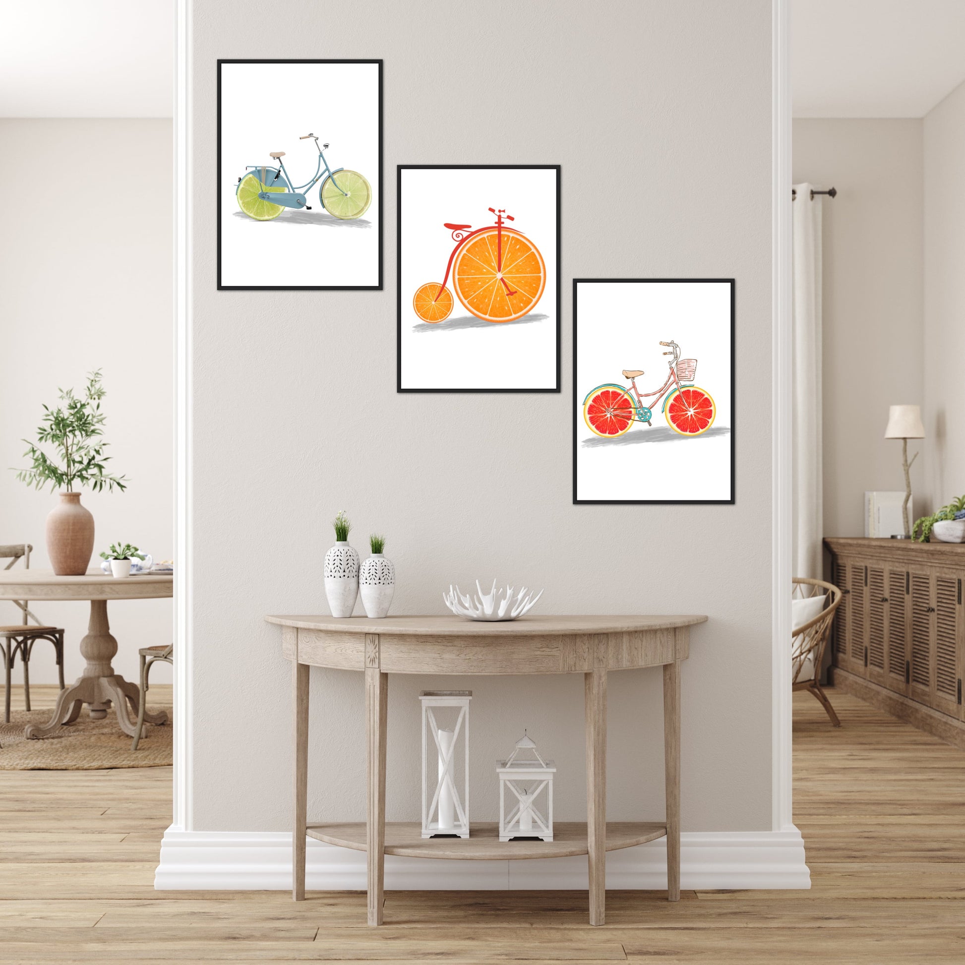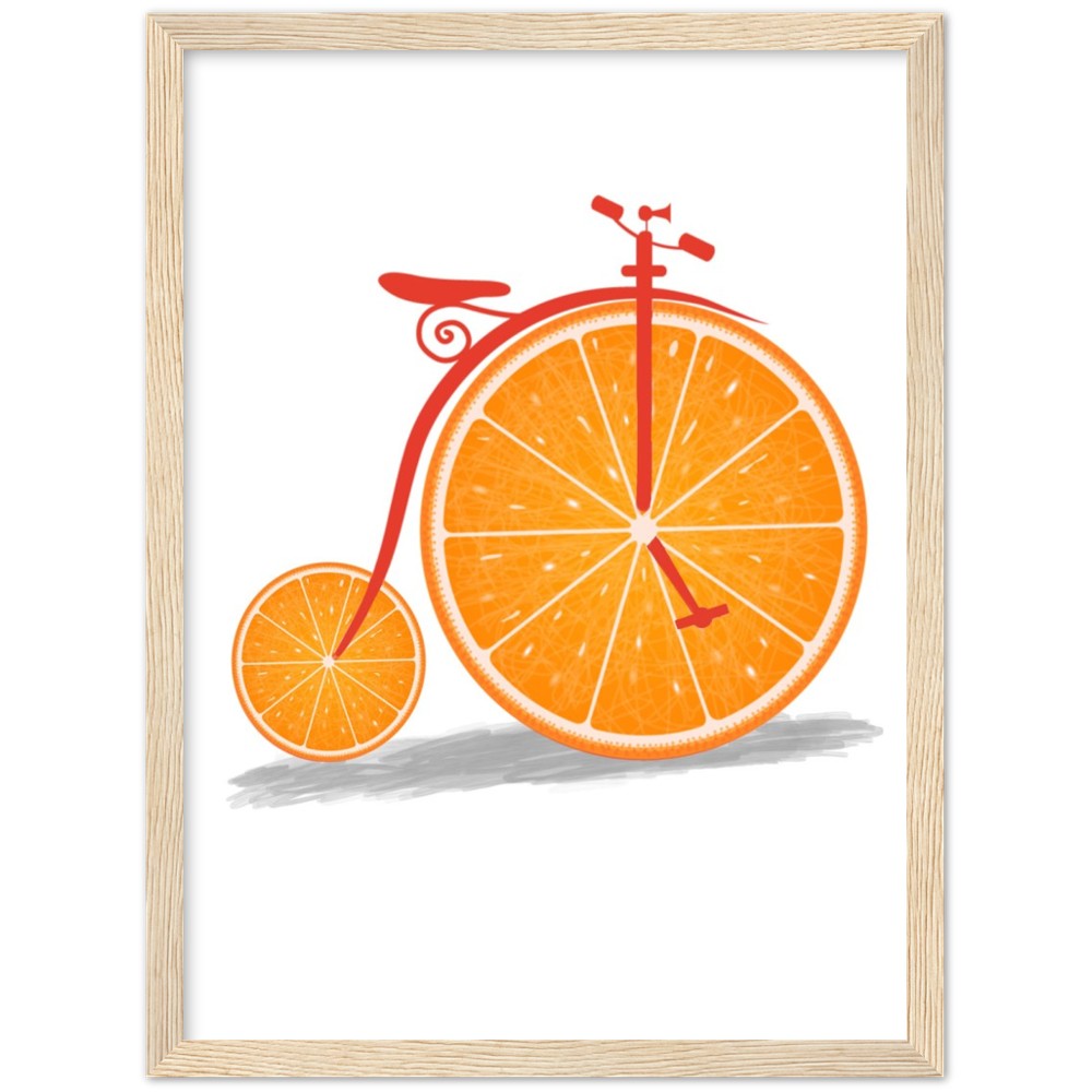 Fun image of the Pennyfarthing, depicting fruit for the wheels. Also available as a digital download.