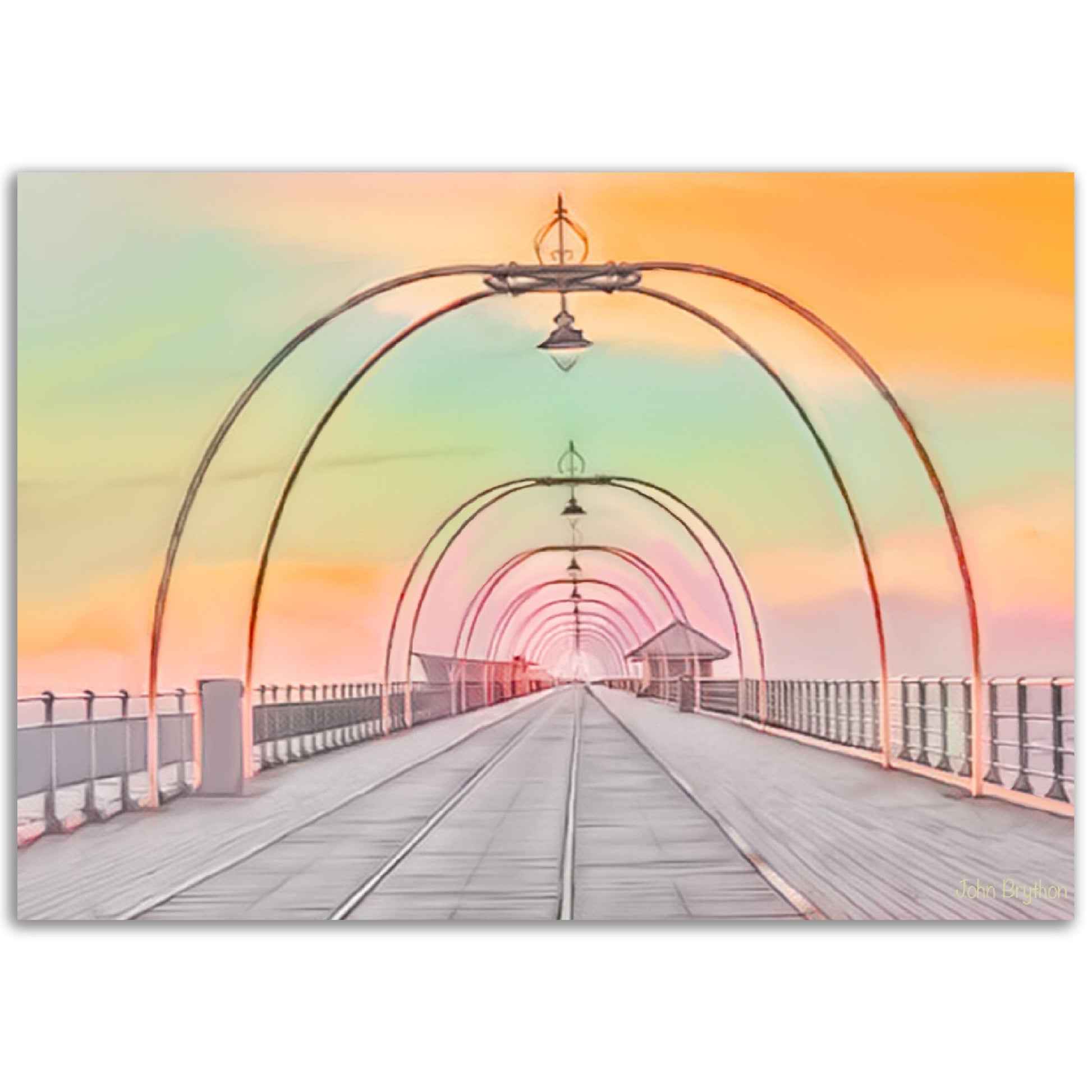 Introducing the beautiful landscape art print of Southport Pier by digital artist John Brython, now available in a range of sizes to suit your preferences. This high-quality print is a stunning representation of Southport Pier, capturing the pier's iconic Victorian architecture.