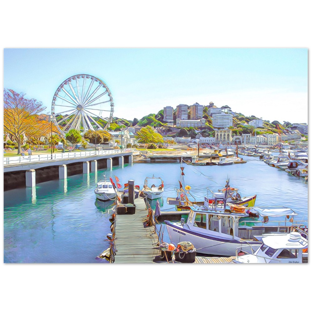 Torquay Marina Art Print by John Brython - Serene Coastal Landscape of Devon, EnglanIntroducing the stunning landscape art print of Torquay Marina by digital artist John Brython, now available in various sizes to suit your needs. This high-quality print captures the natural beauty and serene atmosphere of Torquay Marina, making it the perfect addition to any home or office.