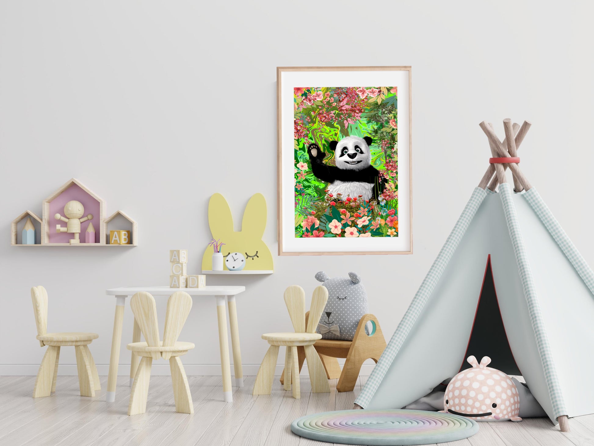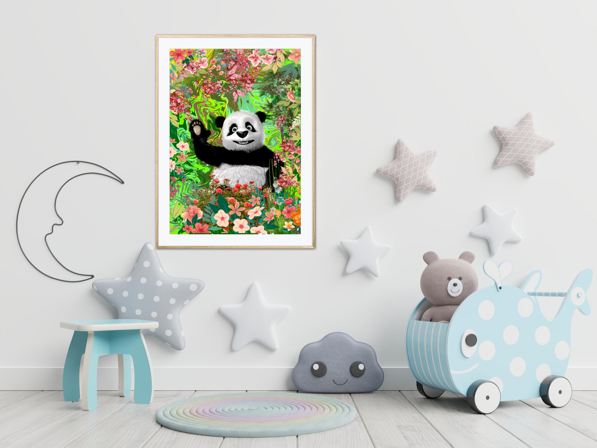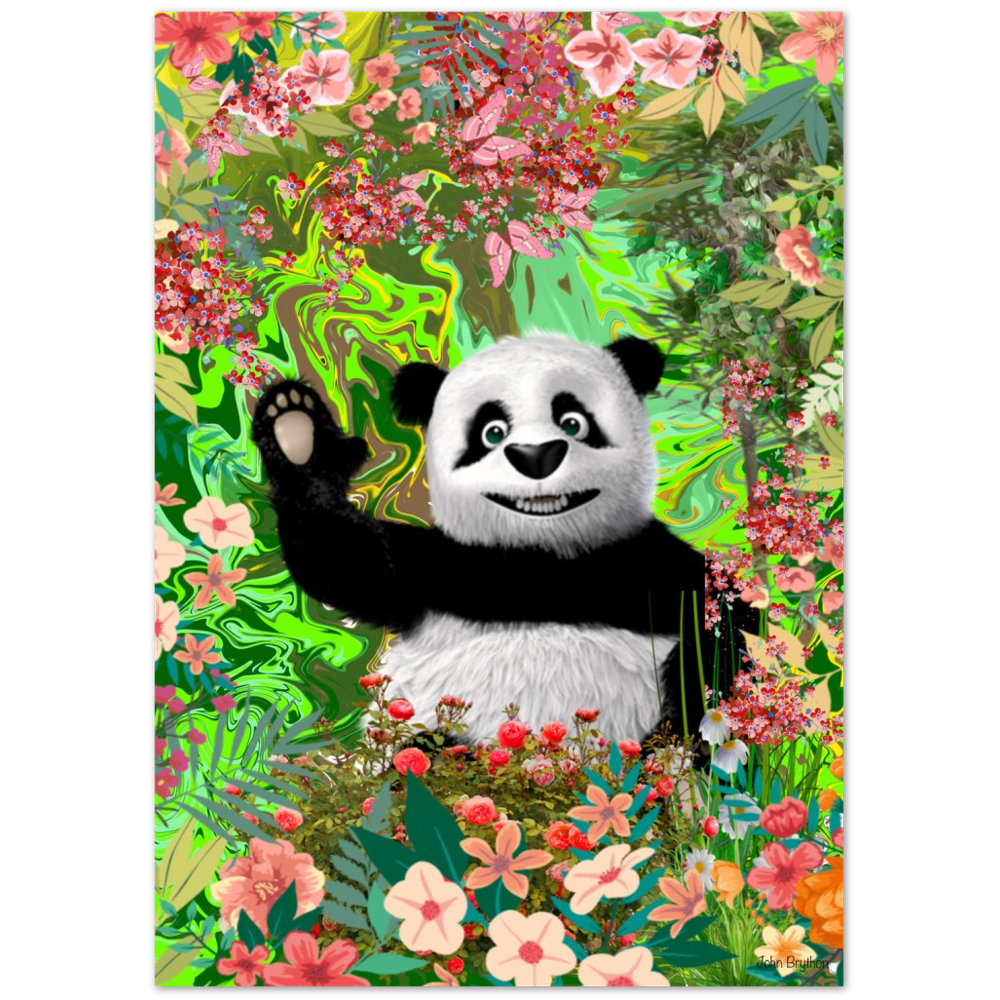 A happy panda bear waving, Printed on quality paper please note the frame is not included